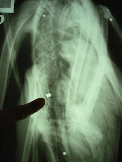 The bird came to us emaciated and weak, but with no apparent injuries. We suspected lead poisoning might be the problem and upon x-ray, the VINS Wildlife Services department found the bird to be riddled with bird shot (see photo; x-ray courtesy of Kedron Valley Veterinary Clinic in Woodstock, VT), including a pellet from a pellet gun we believe contained lead. Luckily, the lead pellet was not in the bird’s gizzard, which would have caused severe lead poisoning. We did treat the bird for lead, and also with several medications to treat his heavy parasite load (most wild birds carry parasites).