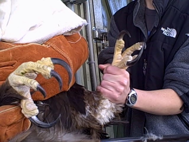 Yesterday, VINS staff donned heavy-duty welding gloves and tackled golden eagles. Sounds a little weird, but it’s all in the name of health!