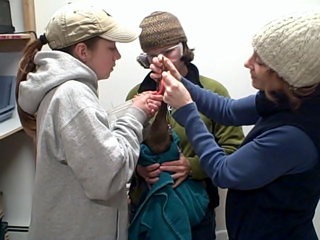 Although the bird is more vibrant and active than when he first arrived at VINS, he is still struggling to recover. We’re currently feeding the cormorant a fish slurry, which entails blending a whole fish in the blender and straining out the large bones (yuck!). It makes for a pretty stinky task for staff here to do, but it’s a nutritious and appropriate meal for this fish-loving bird. The bird is still too weak to eat on his own, so tube-feeding him slurry is the way to go.