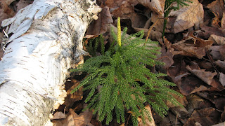 With the beautiful fall days we’ve been having, it’s a great time to get out for a walk in the woods. Some may think of November as a dreary month, but all around us life endures. In full display this time of year are the Clubmosses, one of several species of plants that belong to the plant family Lycopodiaceae. Princess pine, ground cedar, tree clubmoss and running pine are all members of this same family, and are often referred to simply as Lycopodiums. Among our favorites is the princess pine or flat-branched tree club-moss (Dendrolycopodium obscurum) shown here.