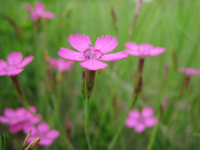 Eye-catching in color, the delicate Maiden Pink (Dianthus deltoides) can be found growing in fields and by roadways. It blooms from May to July, and grows from about 1/2-foot to 16-inches high. Don’t be fooled by Deptford Pink, which also blooms in Vermont. Maiden Pink can be distinguished from Deptford by its broader petals with notched tips, and a pinkish-red ring toward the center of the flower. Photos by Meghan Oliver.