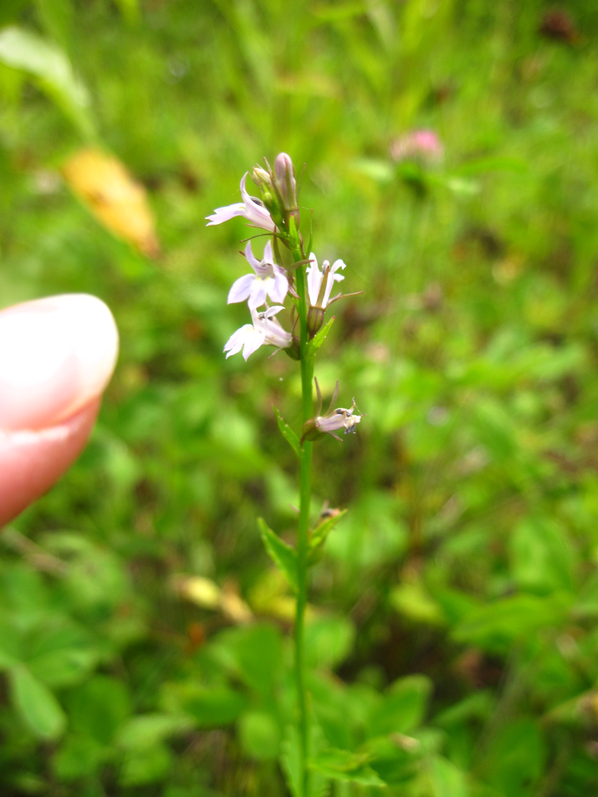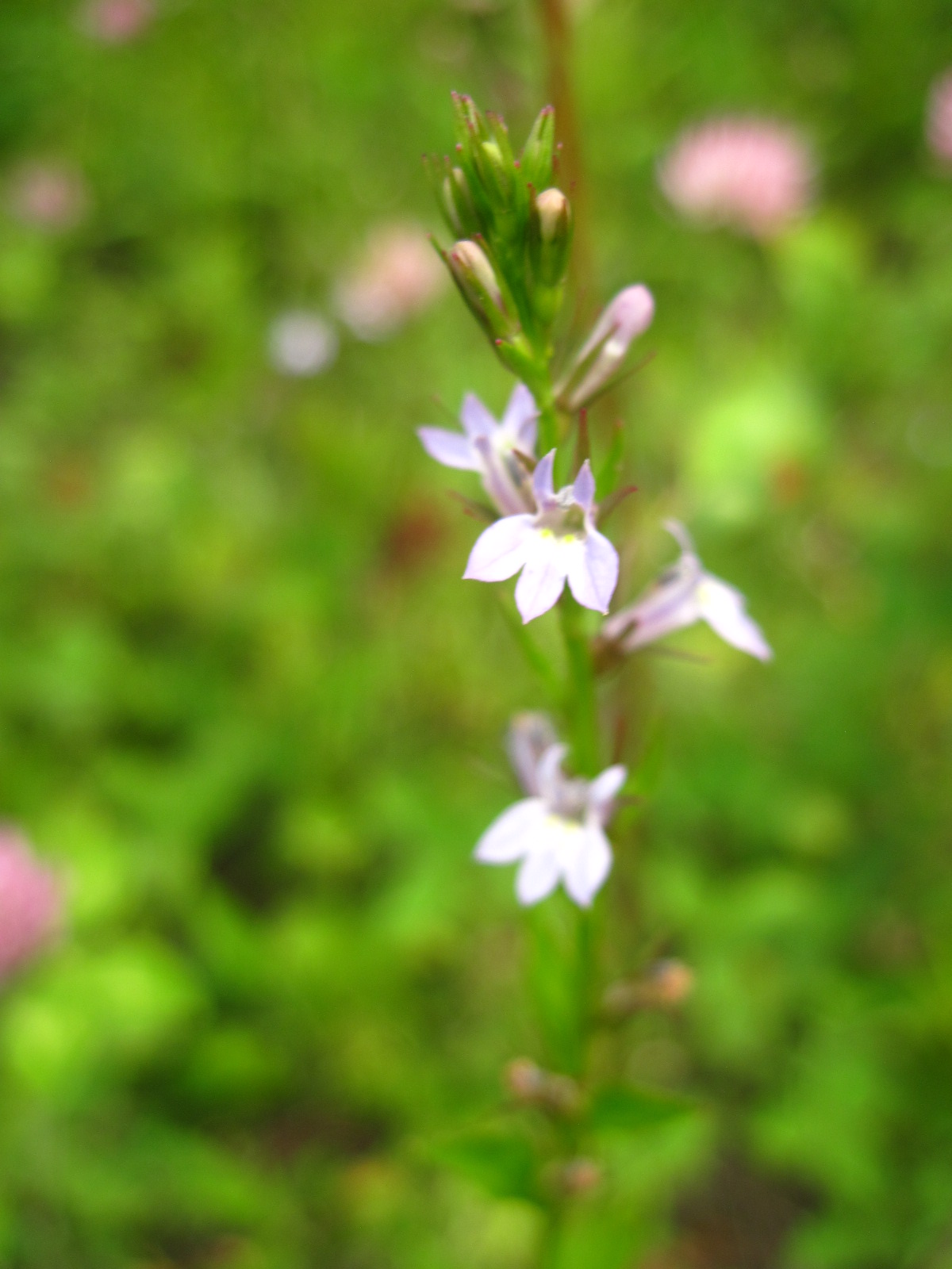 Spiked lobelia (Lobelia spicata) is one such native flower. At home in meadows and thickets, this flower has a spike-like cluster of small bluish-white flowers on a slender stalk. Each flower has the telltale “lobelia look” of two narrow lobes above three wider lobes below. The stalk itself can grow up to 4 feet, but with tiny flowers measuring only about 1/3-inch long, this pretty gal is easy to miss. Spiked lobelia is blooming now through August, so head outside and look for it now.