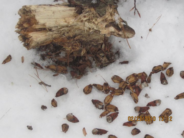 I find the best time to explore is in the morning, when signs are fresh and hopefully have not been disturbed by weather or humans. As you’re walking through an area, look for footprints, scat (poop), chew marks, tunnels, fur, pinecone remains and anything else that you think could potentially be a sign. Take the time to observe the sign and jot down notes in your notebook. Note the conditions of the day. Write a description of the sign. With the tape measure, measure the sign (so you have something for scale) and take a picture. This way you can always remember what the sign looked like and others can look at the sign as well.