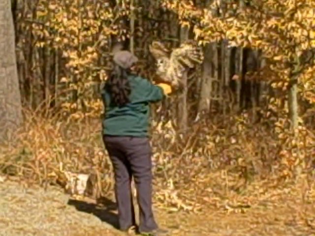 It appeared to be a little hard for this barred owl to say goodbye to staff here at the Vermont Institute of Natural Science. The owl, recently released back into the wild after successful rehabilitation here at VINS, took a while to fly from VINS intern Priya Subbarayan’s outstretched arms, as you’ll see in our video.