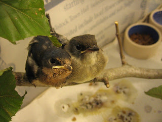 Left: A fledgling barn swallow (left) and a fledgling eastern phoebe were patients in Wildlife Services during the summer of 2008.