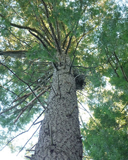 In Rutland, Dick and Ann led us to the place where their dog found the owlet. It was just off a trail, in a patch of large, old pines overlooking a garden at the College of St. Joseph. One look skyward revealed the nest; a collection of thin twigs, molded around larger sticks, bark, and dirt. It was conspicuous, about 60 feet up in one of these pines, but the occupants were not. We stared for a while, passing around binoculars, when Nathan spotted another nest.