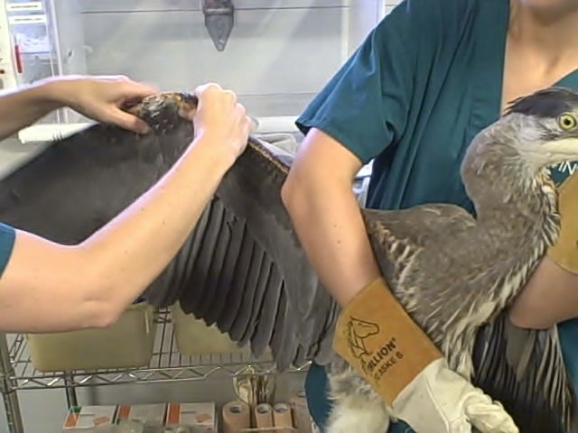 An early mentor of mine called these pterodactyls, and you certainly can see why if you ever have the good fortune of seeing the Great Blue Heron in flight. A big thank you to Meghan and her team for taking such good care of this remarkable aviator. Well done.