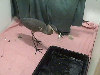 See a video of the heron’s exam, and watch him eat fish!