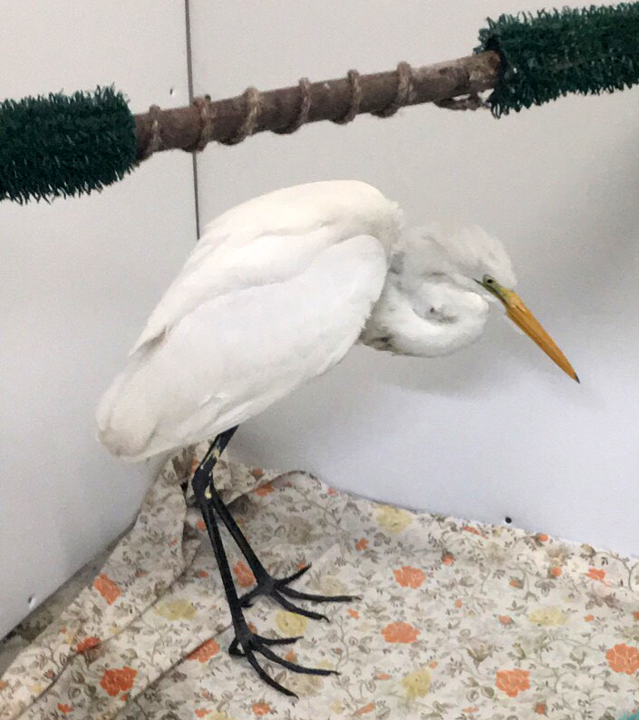 The egret was good and strong, having gained over 200 grams, about a fifth of his total body weight, in care, when we boxed him up for transport on Wednesday, January 11th. After a total of 26 days in our rehab center, this bird had a lot of people rooting for him. I am thrilled to report that the trip was a success, and he is now in good hands. We expect his release and return to the wild, strong and healthy, sometime this spring.