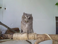 So, in order to keep our contact with the owlet to a minimum and keep this baby thinking it is a bird, we have pulled our adult female eastern screech owl off exhibit to act as a foster mom to the owlet. Our hope is that the female will adopt the owlet and teach him the ways of the owl world so we are able to release him once he is old enough.