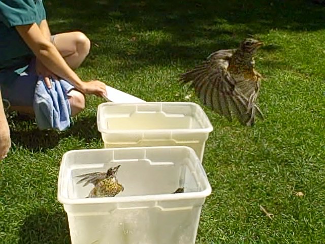 VINS Wildlife Services Manager Sara Eisenhauer released several American robins, songs sparrows, a chipping sparrow, and a cedar waxwing, as VINS visitors watched on. Watch our video of the birds’ release, and be sure to watch for the funny flight of the chipping sparrow!